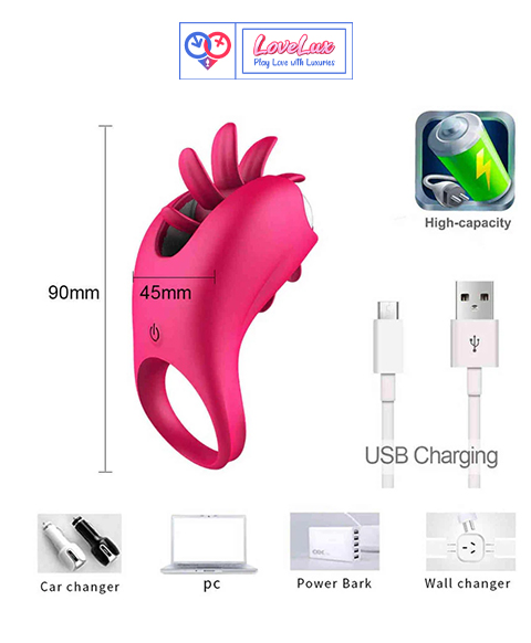 Premium Quality 2 In 1 Vibrating Tongue Licking USB Charging Penis Ring For Couple is specially designed to keep you harder and let you stay for longer. This vibrating penis ring is made of stretchable silicone and fits just right on your penis.Its unique design consists of rabbit ears on its top for strong stimulation on your partner’s clitoris. It is powered with a bullet vibrator to accomplish your partner’s deepest desires.