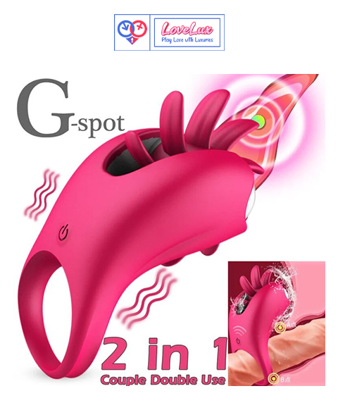 2 In 1 Vibrating Tongue Licking USB Charging Penis Ring For Couple