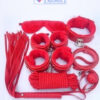 Unleash your deepest desires with our 7 Piece Premium BDSM Set Red, meticulously designed for both beginners and aficionados. This comprehensive collection includes handcuffs, a blindfold, a whip, and more, crafted from high-quality materials for durability and comfort. Explore the thrilling dynamics of power and surrender, enhancing intimacy and connection in your adventurous play.